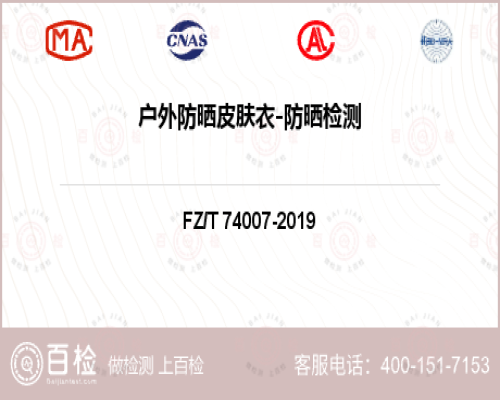 2、戶外防曬皮膚衣 FZ/T74007-2019 5.3---戶外防曬皮膚衣原材料項目檢測